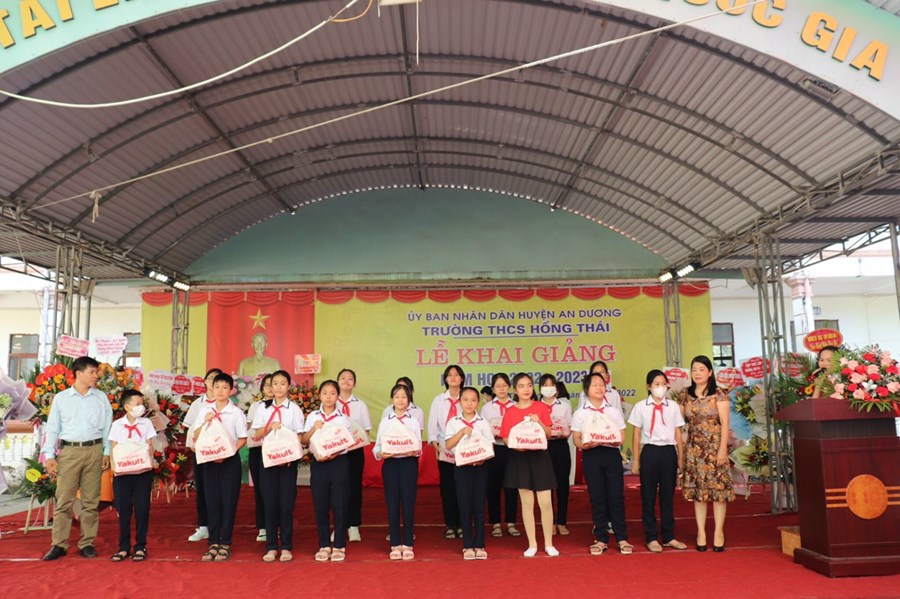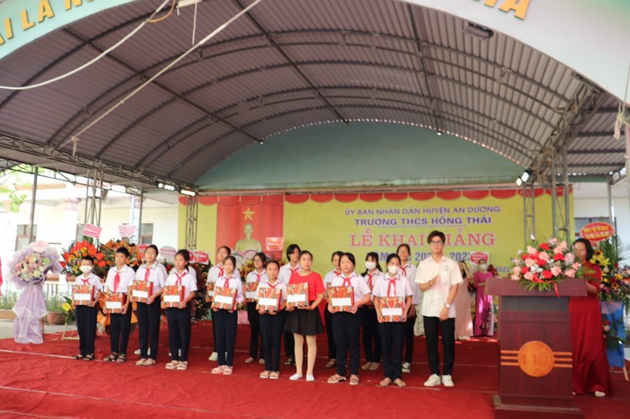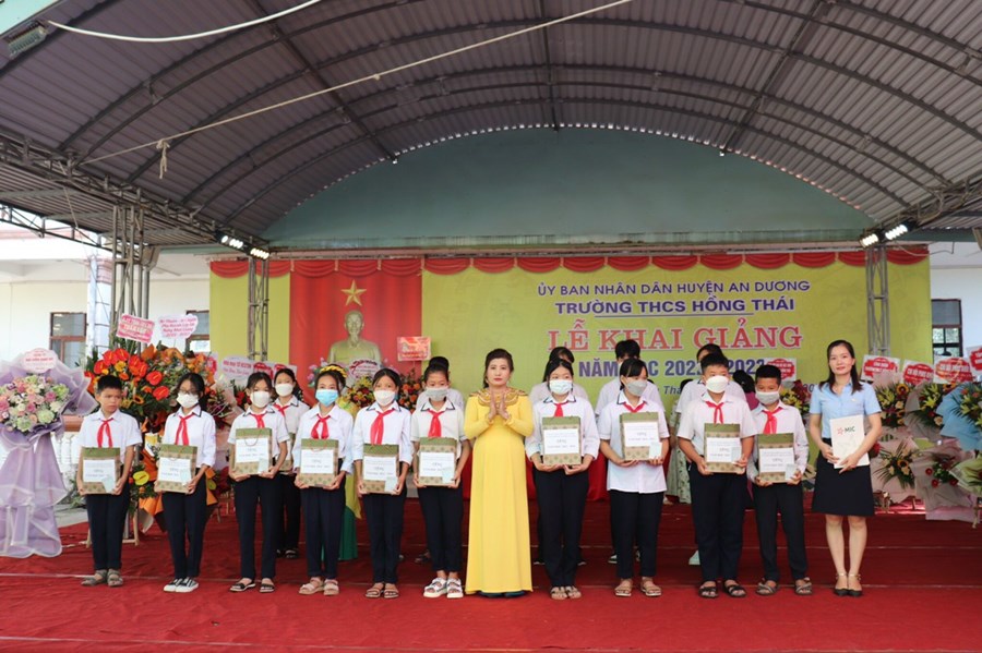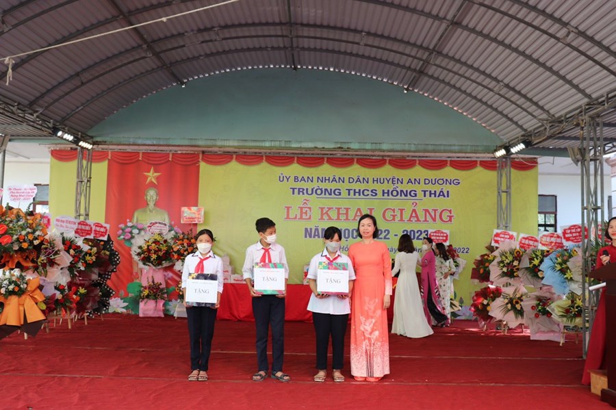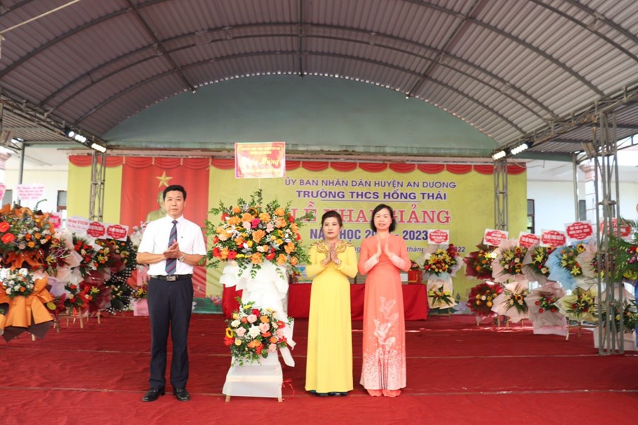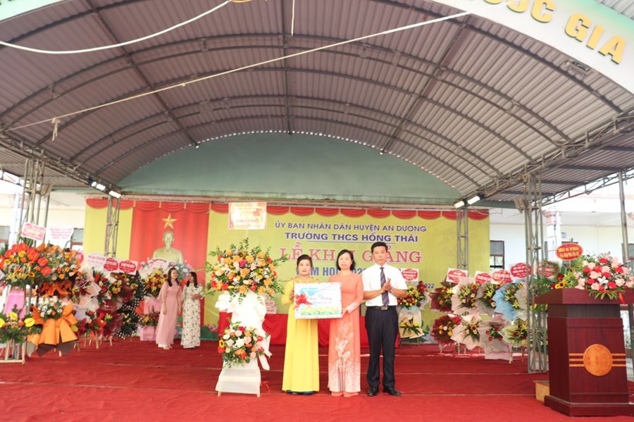Đến dự buổi lễ và động viên thầy trò nhà trường có các đồng chí đại biểu đại diện Huyện uỷ, UBND, UBMTTQ huyện An Dương; Đảng uỷ, UBND, UBMTTQ và các ban ngành đoàn thể xã Hồng Thái; phóng viên báo Gia đình và xã hội, Ban đại diện CMHS nhà trường cùng các đơn vị tài trợ.